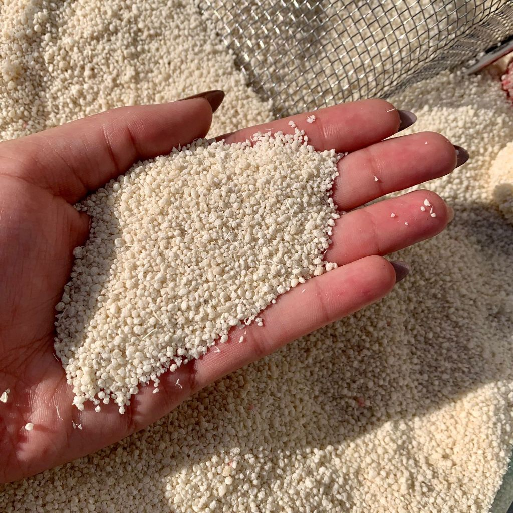 Composição: 100% granulado natural de fécula de mandioca