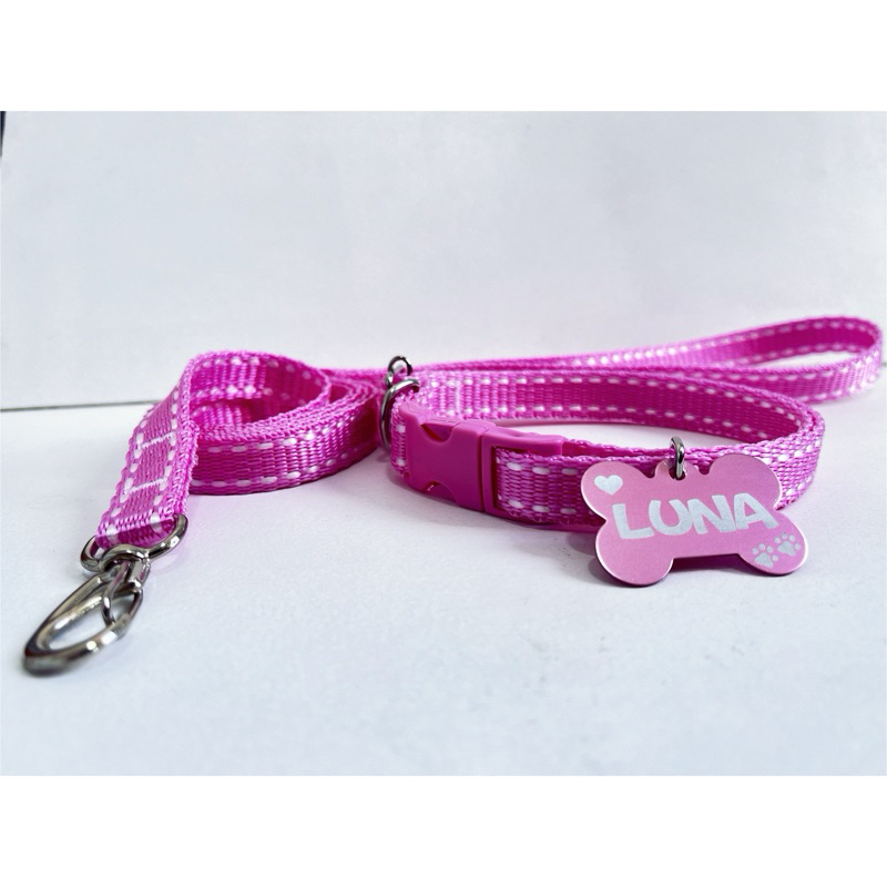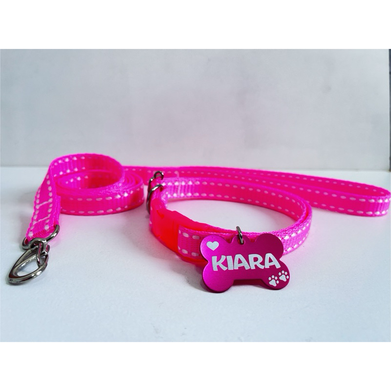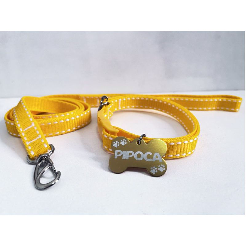 Coleira e Guia para Cachorro com Plaquinha de Identificação