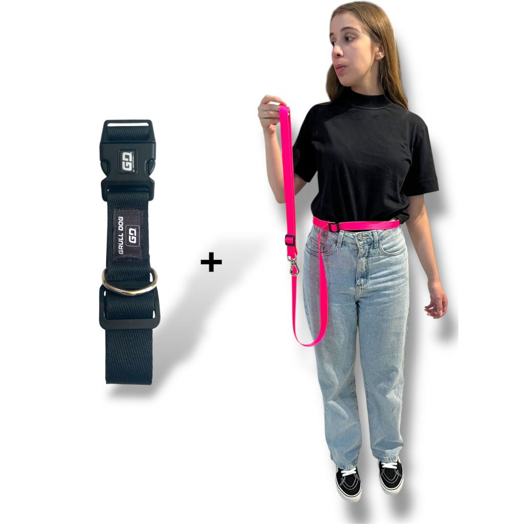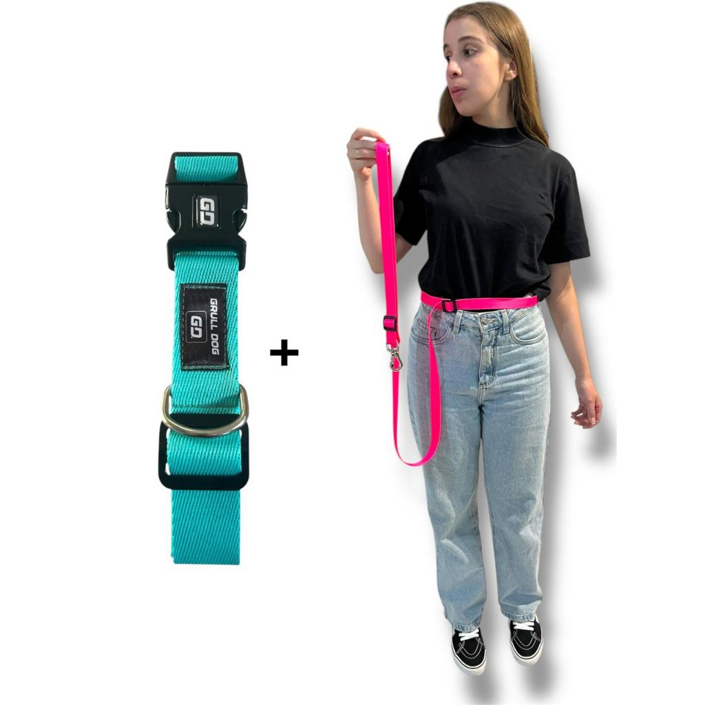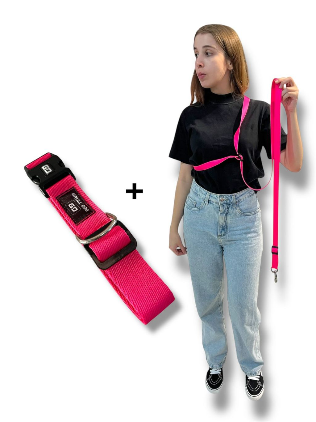 Kit Coleira Ajustável + Guia Mãos Livres 2m – Grull Dog