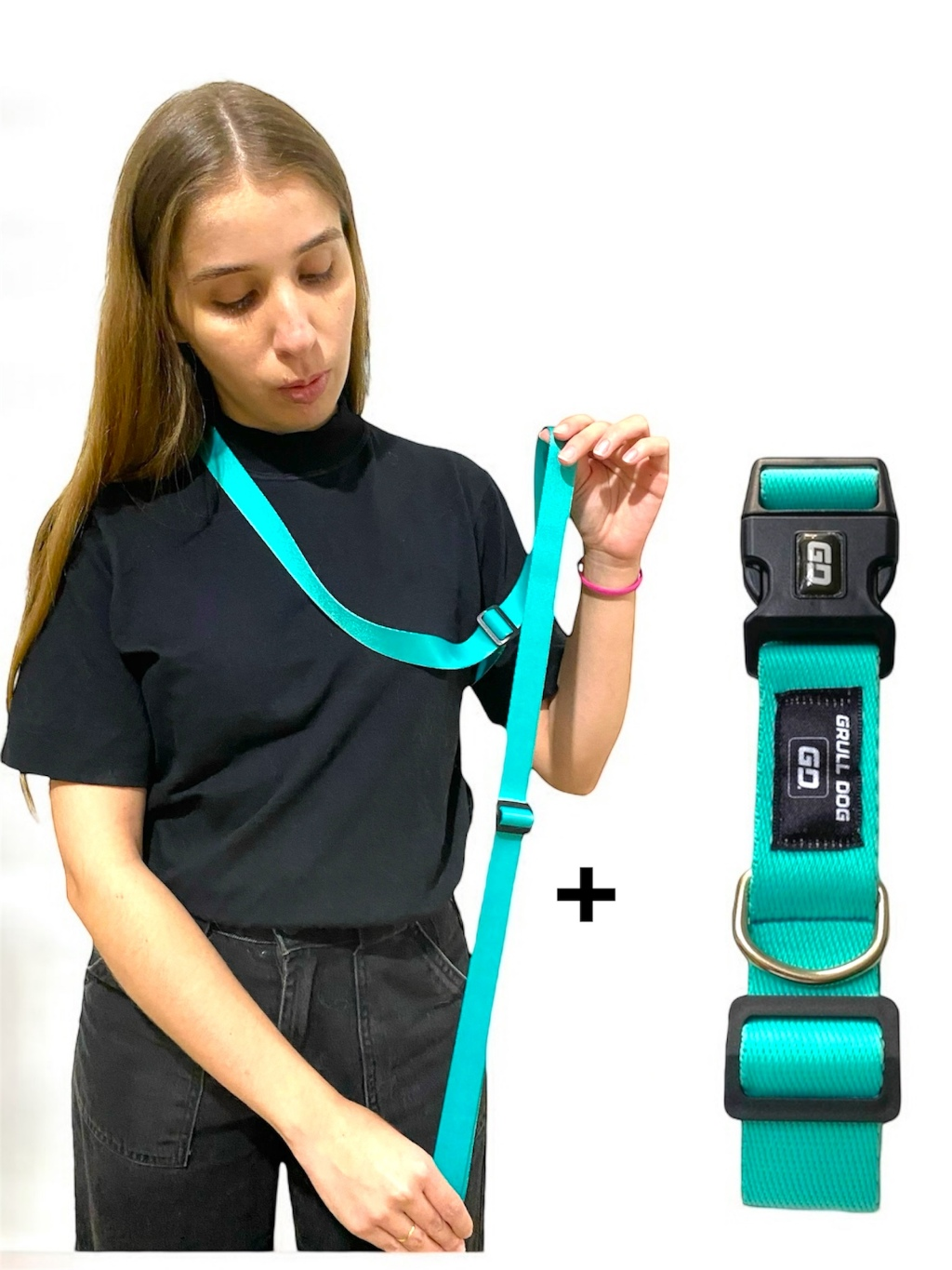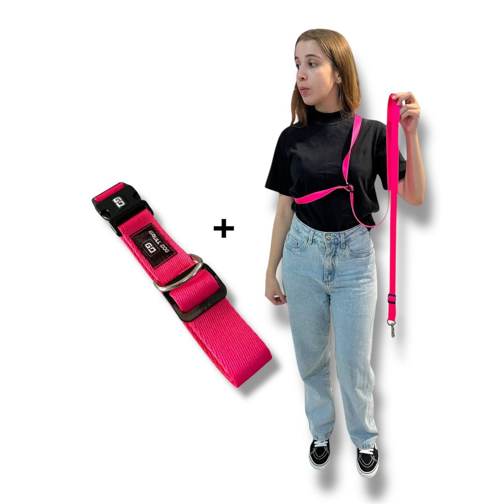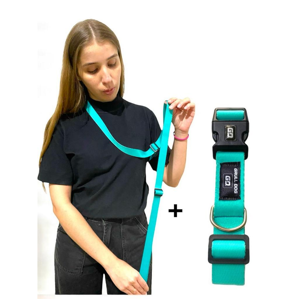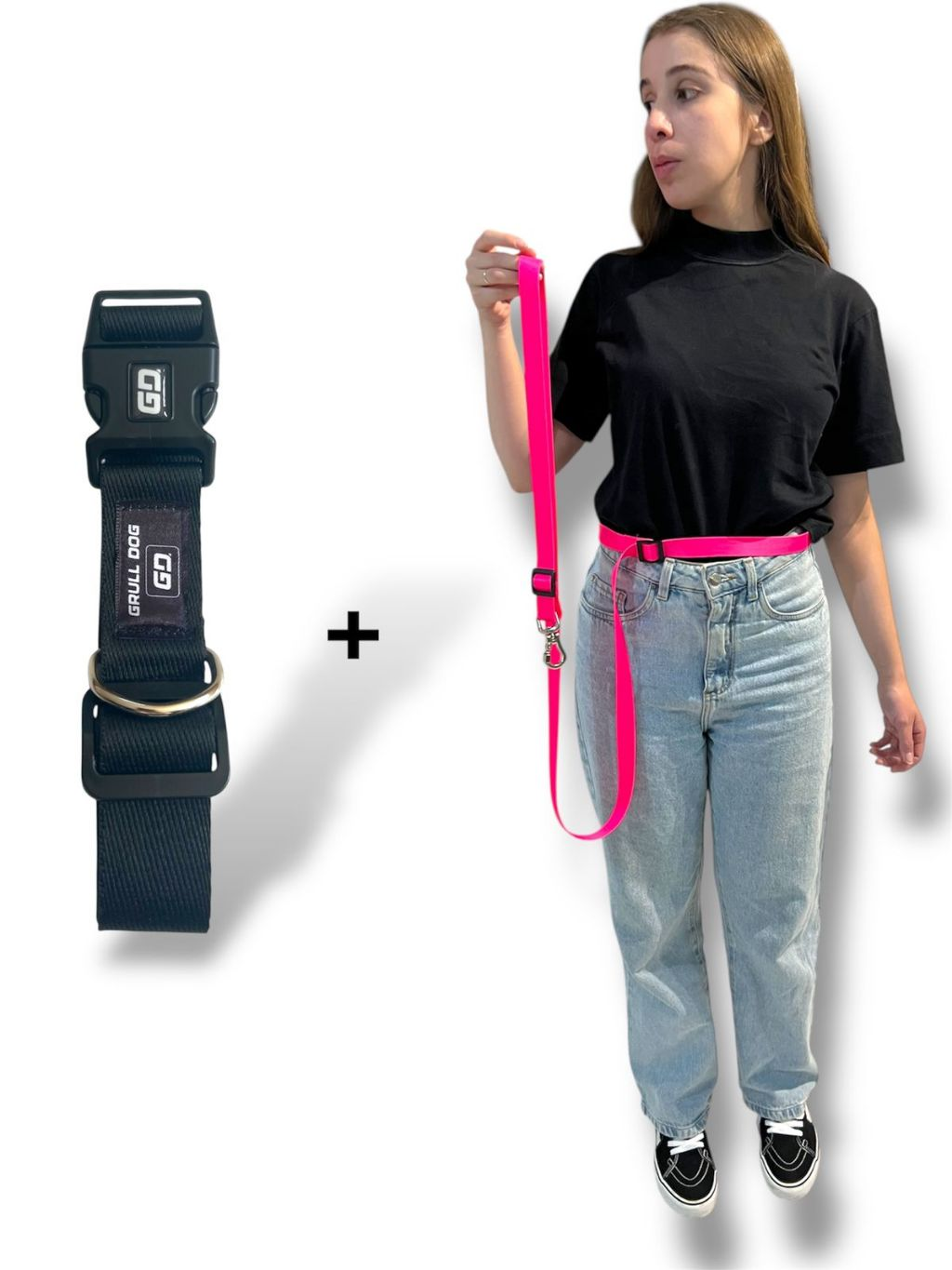 Kit Coleira Ajustável + Guia Mãos Livres 2m – Grull Dog