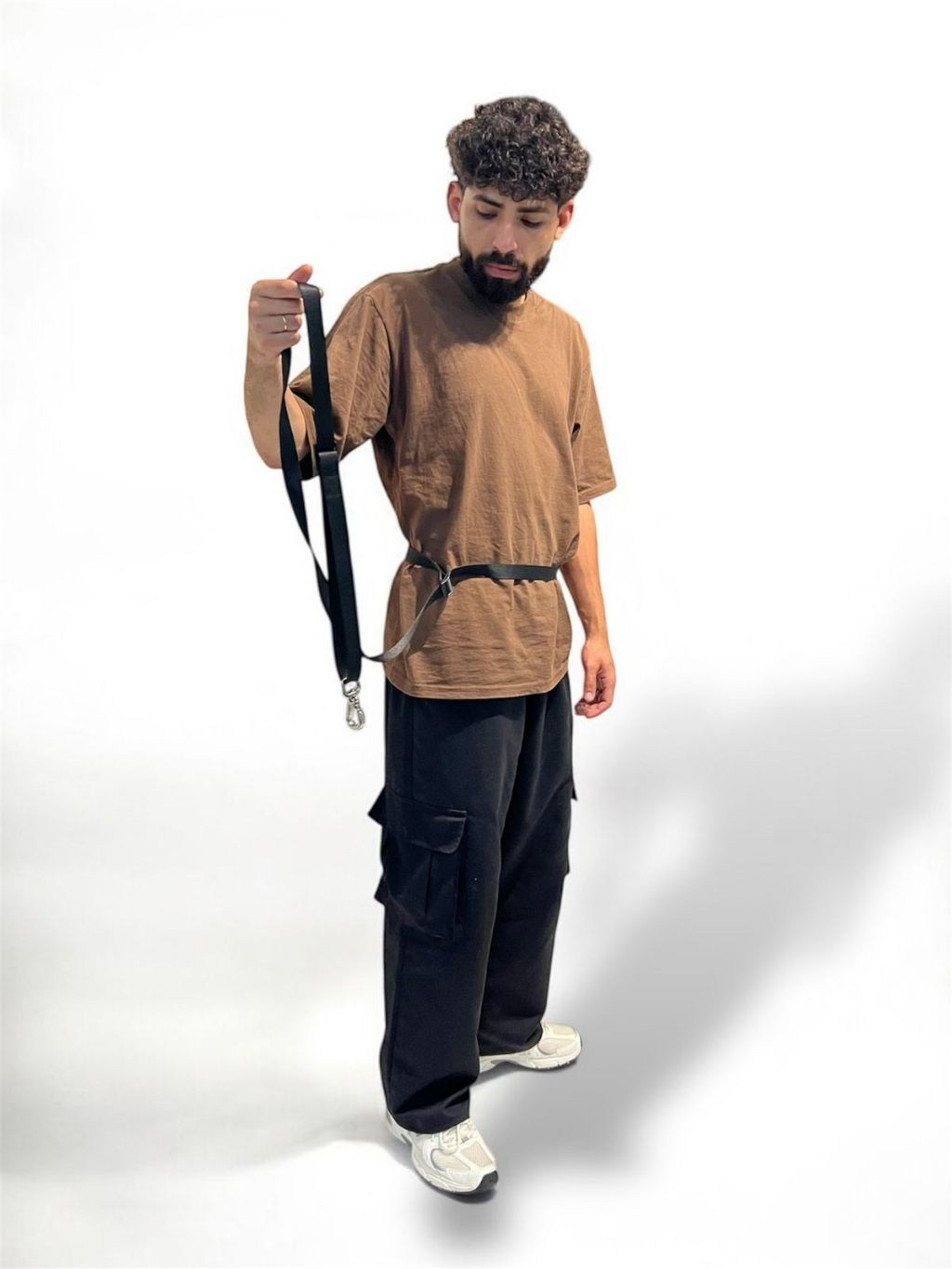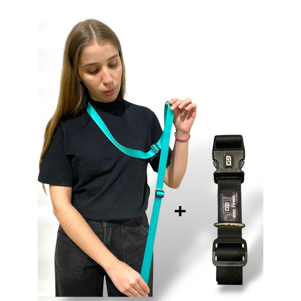 - Guia Mãos Livres: Com 2 metros de comprimento, pode ser presa na cintura ou atravessada no corpo, permitindo que suas mãos fiquem livres durante o passeio.